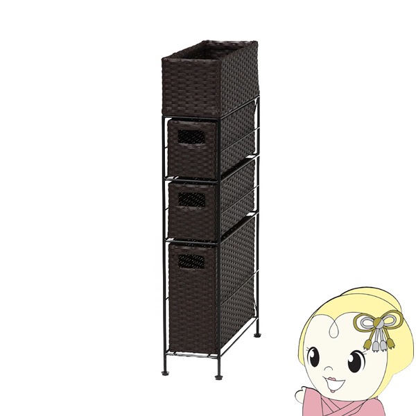 商品コード:RAN-2463GYラック 棚 隙間 すき間 おしゃれ ラタン風 キャスター 引き出し かご バスケットラック シンプル スリム 簡単組立 幅20cm ダークブラウン【送料無料(北海道・沖縄・離島除く)】