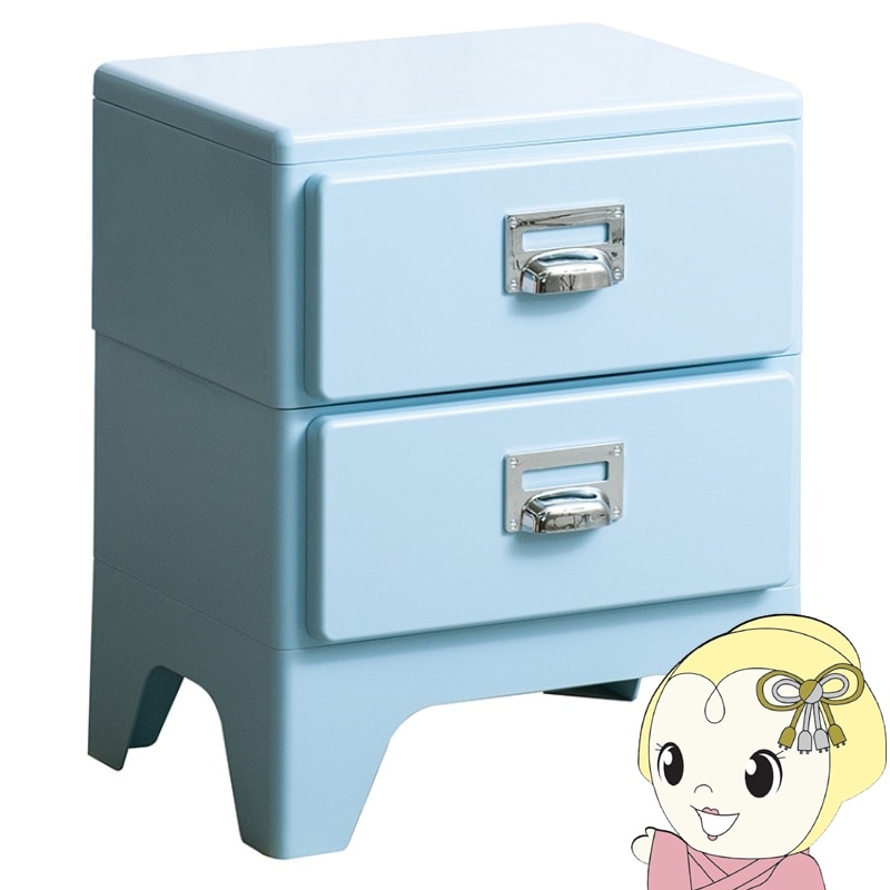 商品コード:RAN-2405DBR多段チェスト Cran クラン 2段 2段タイプ 収納ボックス 収納棚 スリム レトロ 可愛い 角丸加工 収納力 引き出し ネームタグ 洋服 ライトブルー【送料無料(北海道・沖縄・離島除く)】