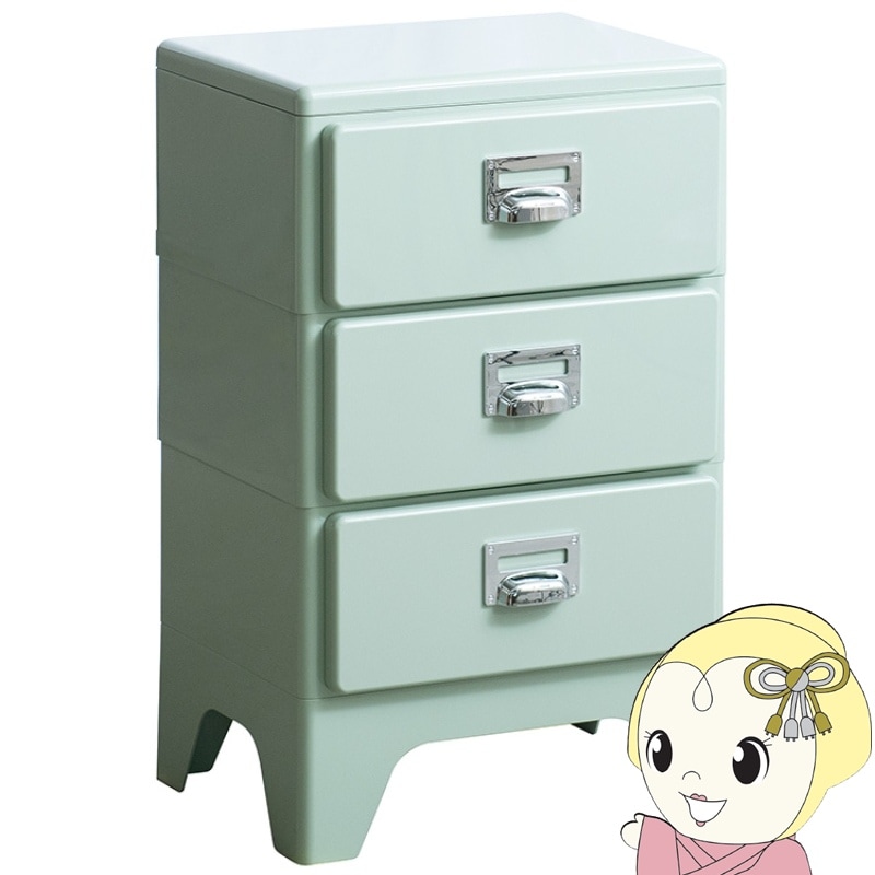商品コード:CBN-H003-LBL多段チェスト Cran クラン 3段 3段タイプ 収納ボックス 収納棚 スリム レトロ 可愛い 角丸加工 収納力 引き出し ネームタグ 洋服 ライトグリーン【送料無料(北海道・沖縄・離島除く)】