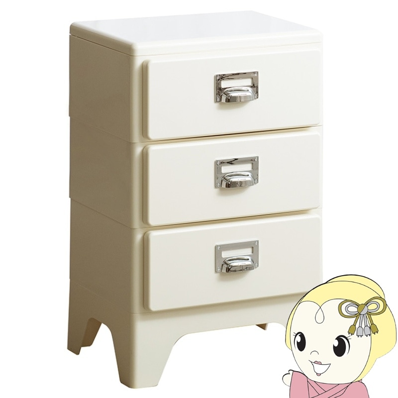 商品コード:CBN-H002-WIN多段チェスト Cran クラン 3段 3段タイプ 収納ボックス 収納棚 棚 スリム レトロ 可愛い 角丸加工 収納力 引き出し ネームタグ 洋服 クリーム【送料無料(北海道・沖縄・離島除く)】