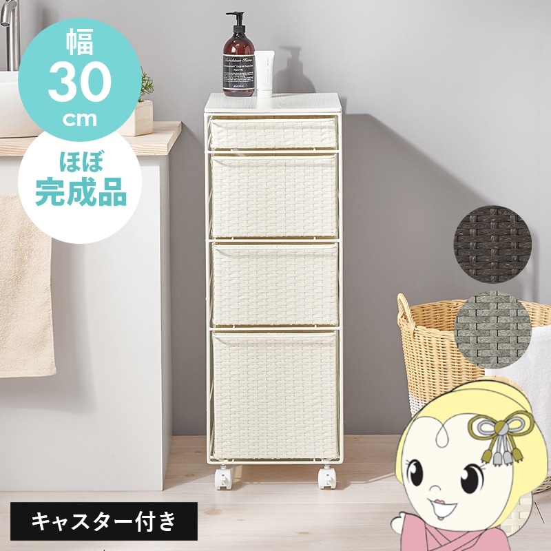 商品コード:RAN-2465NAラック 棚 隙間 すき間 おしゃれ ラタン風 キャスター 引き出し かご バスケットラック シンプル スリム 簡単組立 幅30cm ホワイト【送料無料(北海道・沖縄・離島除く)】