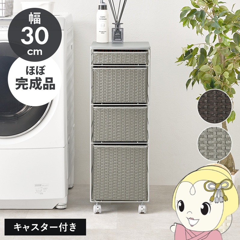 商品コード:RAN-2465DBRラック 棚 隙間 すき間 おしゃれ ラタン風 キャスター 引き出し かご バスケットラック シンプル スリム 簡単組立 幅30cm グレー【送料無料(北海道・沖縄・離島除く)】