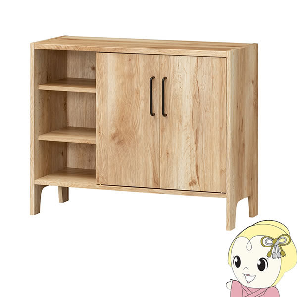 商品コード:RCC-1681キャビネット 幅120cm リビング収納 背面コード穴付き 扉収納&オープン収納 収納家具 木目調 脚つき ナチュラル【送料無料(北海道・沖縄・離島除く)】