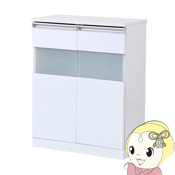 商品コード:FUJI-73406キャビネット 白 ホワイト コンパクトキャビネット カウンター下収納 ガラス 扉 薄型 ロータイプ 幅 60 リビング収納 木製 鏡面 おしゃれ【送料無料(北海道・沖縄・離島除く)】