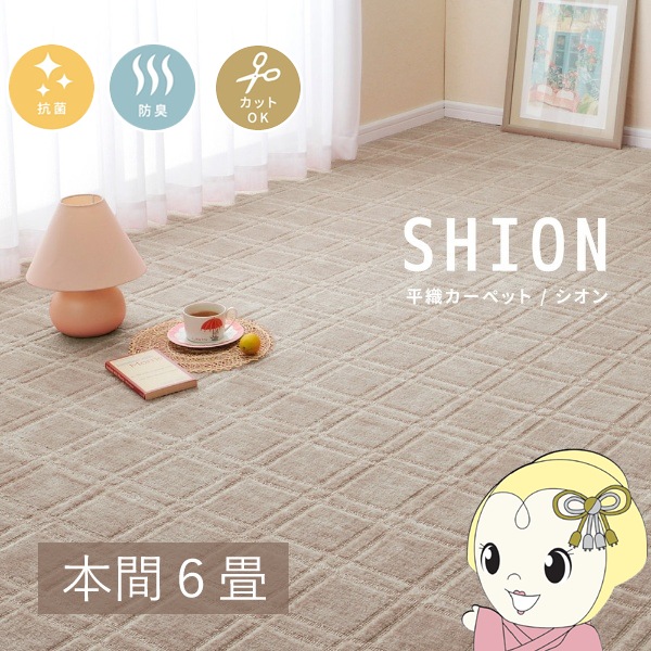 商品コード:HAGI-600200180カーペット 抗菌・防臭加工の平織カーペット シオン 本間6帖 286×382cm グレー【送料無料(北海道・沖縄・離島除く)】