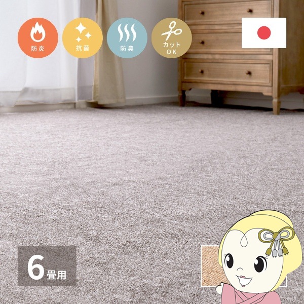 商品コード:HAGI-600092760カーペット 防炎加工の平織カーペット モーエン 江戸間6帖 261×352cm ベージュ【送料無料(北海道・沖縄・離島除く)】