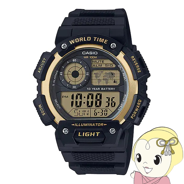 商品コード:AE1400WH1AV在庫処分 腕時計 【逆輸入品】カシオ CASIO チープカシオ チプカシ ワールドタイム デジタル メンズ 腕時計 ブラック×ゴールド AE-1400WH-9AV