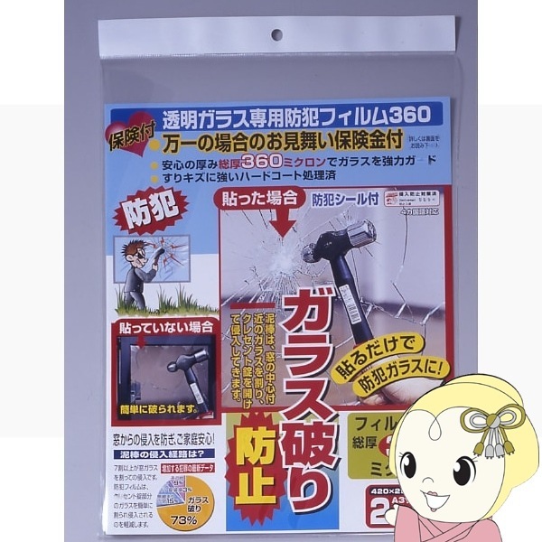 商品コード:SHK48455K-SET5在庫限り ノムラテック 保険付・透明ガラス専用防犯フイルム 360ミクロン A3サイズ 2枚入 N-2255【送料別】