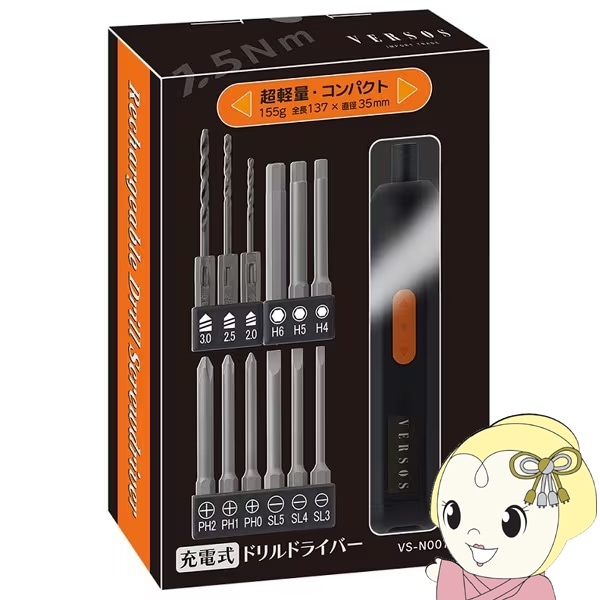 商品コード:48-22-8070在庫あり ドリルドライバー ドライバー セット 電動ドライバー 充電式 超軽量 コンパクト 小型 コードレス ベルソス 六角レンチ 工具 VS-N007SY【送料別】