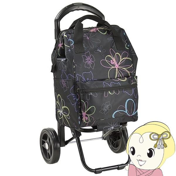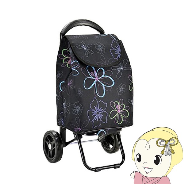商品コード:15186-5ショッピングバッグ ショッピングカート キャスター ヴァレンチノヴィスカーニ 2本手口枠タイプ 黒 花柄【送料無料(北海道・沖縄・離島除く)】