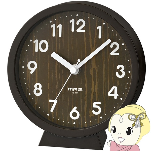 商品コード:W-770BR-Z置き時計 アナログ ノア精密 MAG 非電波 連続秒針 コチコチしない 置き掛け兼用 スタンド付き コンポート ナチュラル インテリア おしゃれ【送料別】