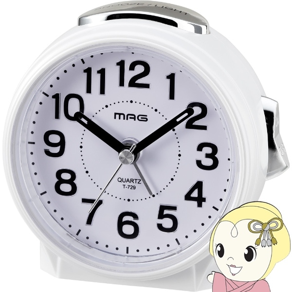 商品コード:MEC-19目覚まし時計 MAG マグ ノア精密 置き時計 アナログ 連続秒針 コチコチしない ブルーブライト ホワイト T-729WH-Z【送料別】