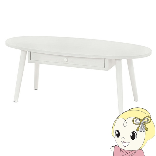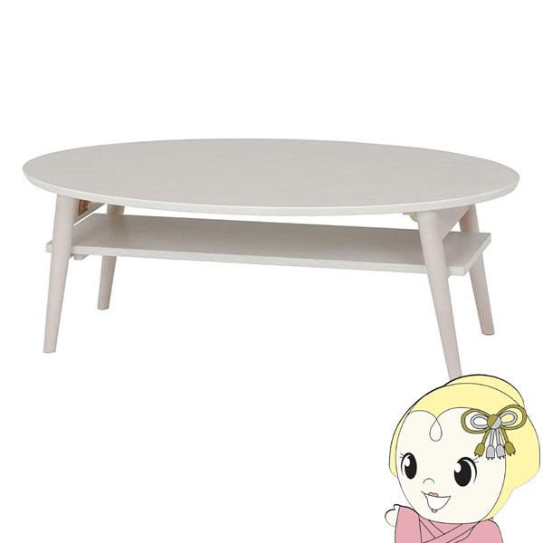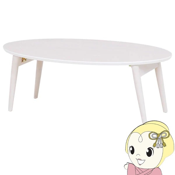 商品コード:IW-1275B-NAローテーブル テーブル 楕円 折りたたみ 【天然木 タモ材使用】 ホワイト 完成品 幅95 奥行40 高さ32 おしゃれ 萩原【送料無料(北海道・沖縄・離島除く)】