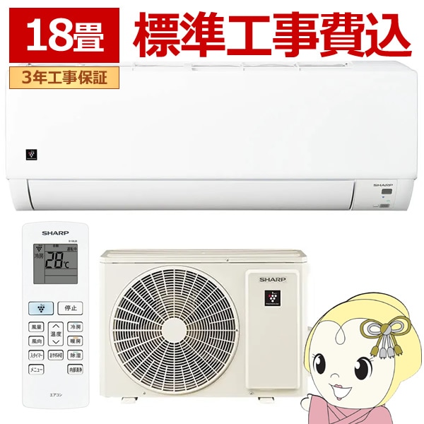 商品コード:AY-T56E2WSETエアコン 標準工事費込 18畳用 シャープ 5.6kW 単相200V DGシリーズ 2025年モデル AY-T56DG2-W ホワイト系【関東~四国は送料無料!(離島除く)】