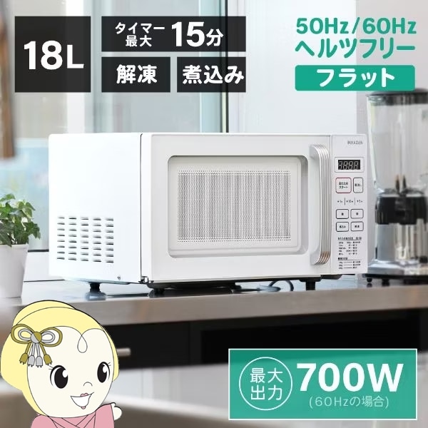 商品コード:JM18AGZ01BK送料無料(沖縄・北海道・離島除く)■電子レンジ maxzen マクスゼン 単機能電子レンジ 18L ヘルツフリー 東日本 西日本 フラット式 ホワイト JM18GZ01WH