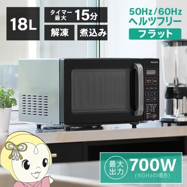 商品コード:JM18GZ01WH送料無料(沖縄・北海道・離島除く)■電子レンジ maxzen マクスゼン 単機能電子レンジ 18L ヘルツフリー 東日本 西日本 フラット式 ブラック JM18GZ01BK