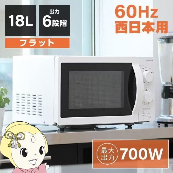 商品コード:K09A-BK送料無料(沖縄・北海道・離島除く)■電子レンジ 60hz 西日本専用 maxzen マクスゼン 単機能電子レンジ 18L フラット式 6段階出力 ホワイト JM18BGZ01WH