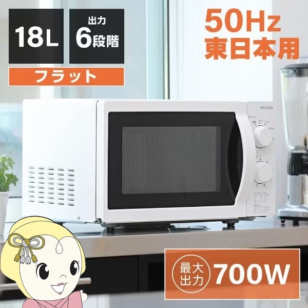 商品コード:JM18BGZ01BK送料無料(沖縄・北海道・離島除く)■電子レンジ 50hz 東日本専用 maxzen マクスゼン 単機能電子レンジ 18L フラット式 6段階出力 ホワイト JM18AGZ01WH