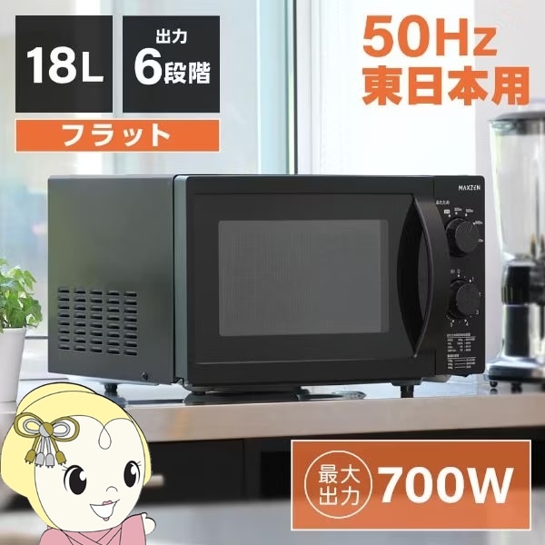 商品コード:JM18AGZ01WH送料無料(沖縄・北海道・離島除く)■電子レンジ 50hz 東日本専用 maxzen マクスゼン 単機能電子レンジ 18L フラット式 6段階出力 ブラック JM18AGZ01BK