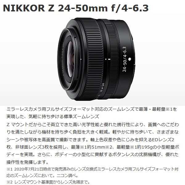 | 交換レンズ | Zマウント用NIKKORレンズ Fマウント用NIKKORレンズ(マウントアダプター使用時、一部機能制限あり) |