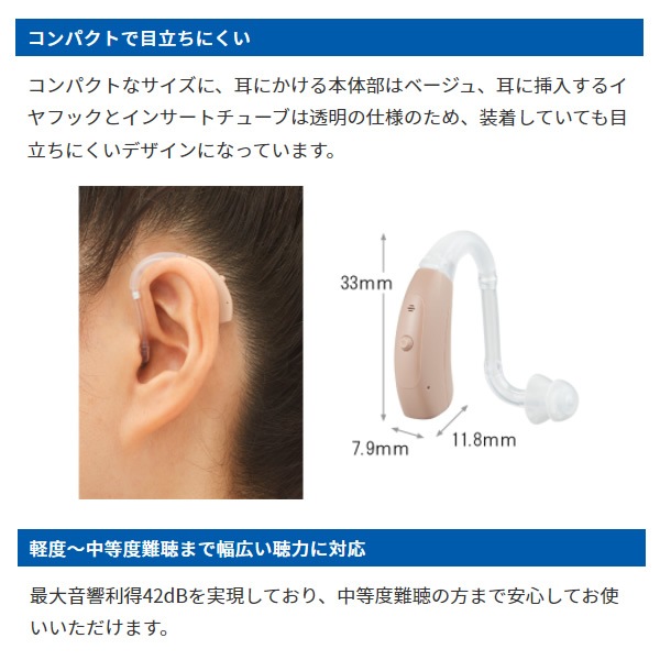| 最大音響利得 | ピーク値:55dB 高周波数平均値:42dB |