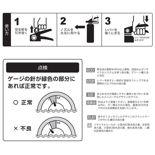 | 適応火災 | 普通・天ぷら油・ストーブ・電気 |
