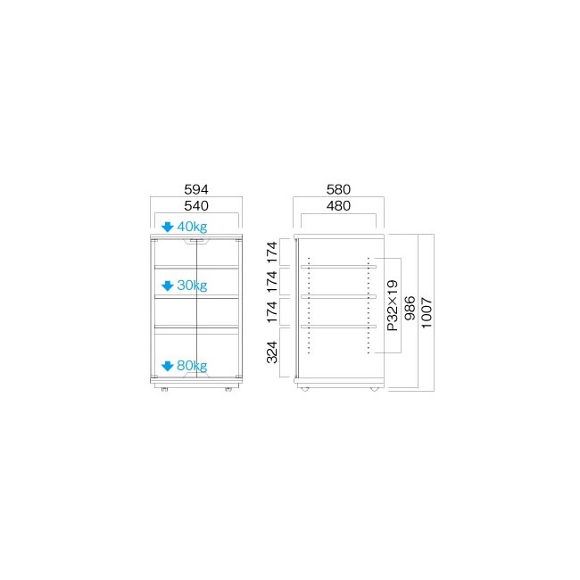 | 備考 | 天板 耐荷重:40kg以下 棚板 耐荷重:30kg以下 底板 耐荷重:80kg以下 |