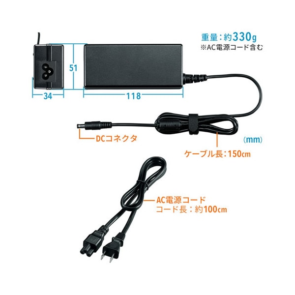 | ケーブル長 | 1.5m ※本体のDCケーブルド |