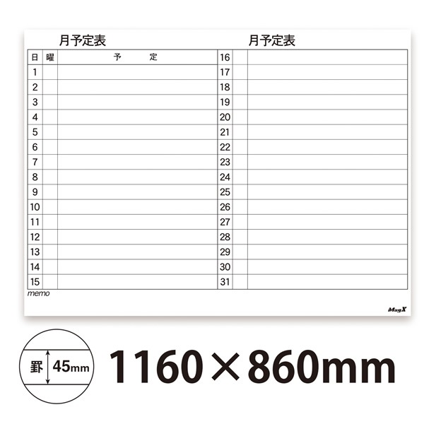 | 付属品 | ボードマーカー(黒・赤)・マグネット付トレイ・マグネット付イレーザー |