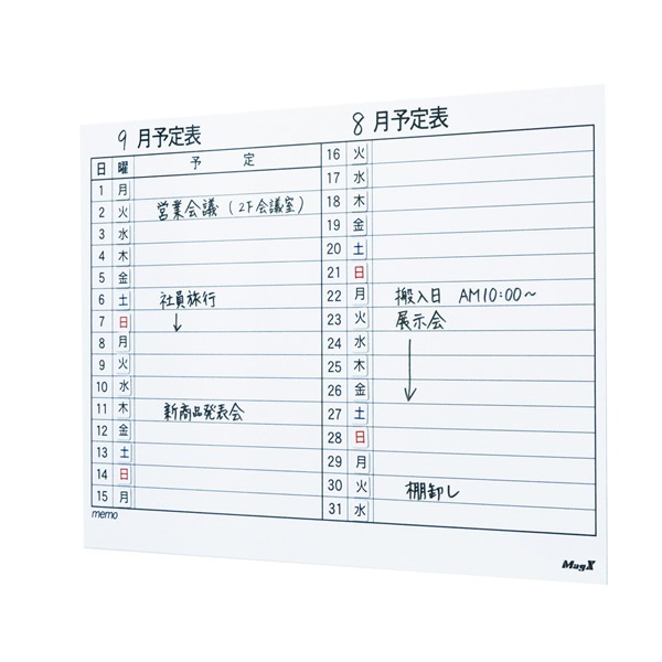 | 付属品 | ボードマーカー(黒・赤)・マグネット付トレイ・マグネット付イレーザー |