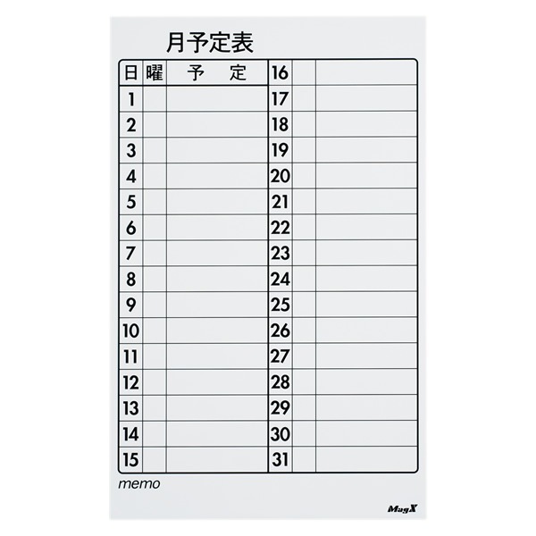 | 付属品 | ボードマーカー(黒・赤)・マグネット付トレイ・マグネット付イレーザー |