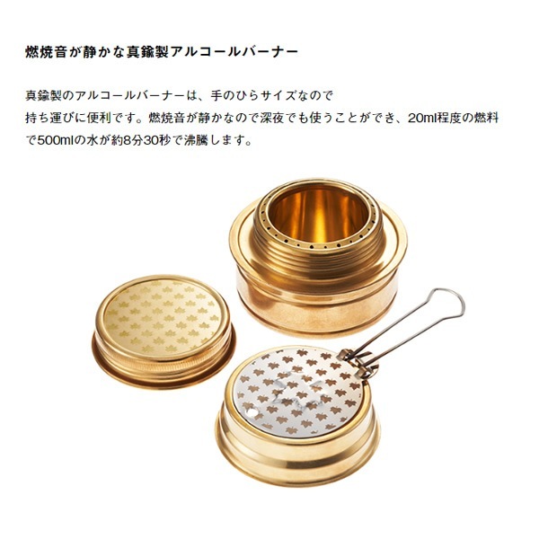 | 性能 | 20ml程度の燃料で500mlの水が約8分30秒で沸騰します。 |