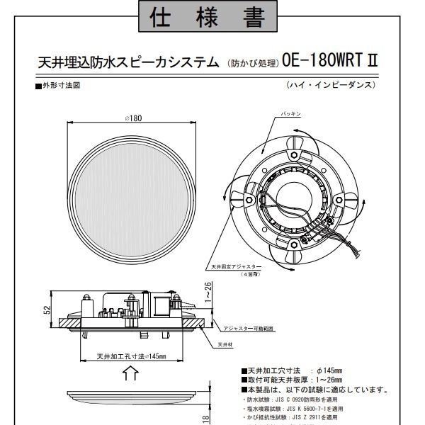 | 定格入力 | OE-180WRII:10W(最大20W) / OE-180WRTII:3W |