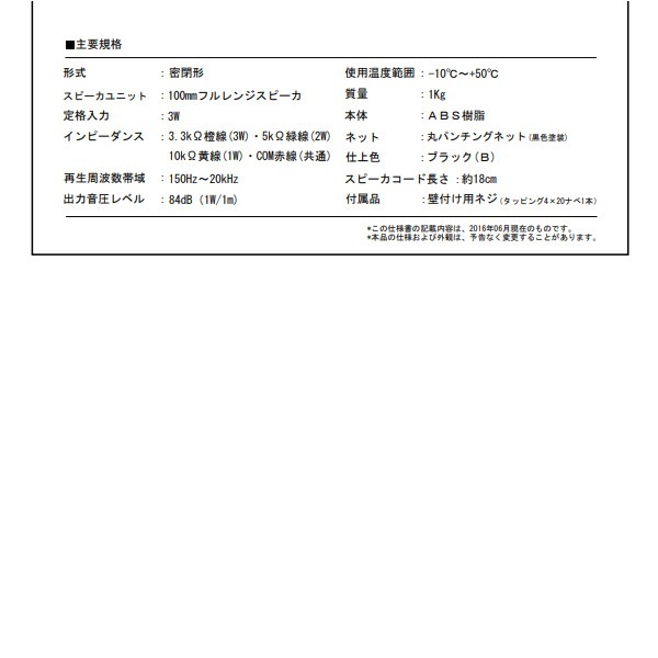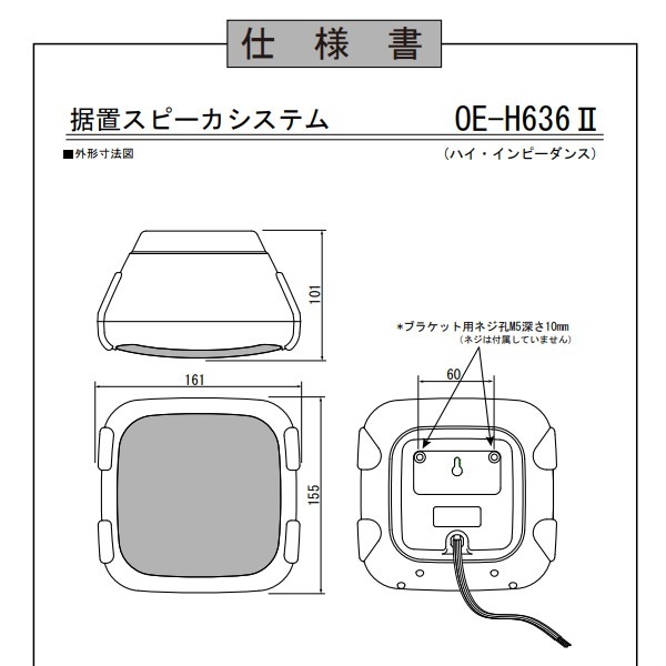 | 公称インピーダンス | OE-636II(B):6Ω/OE-H636II(B):3.3kΩ橙線(3W)・5kΩ緑線(2W)・10kΩ黄線(1W)・COM赤線(共通) |