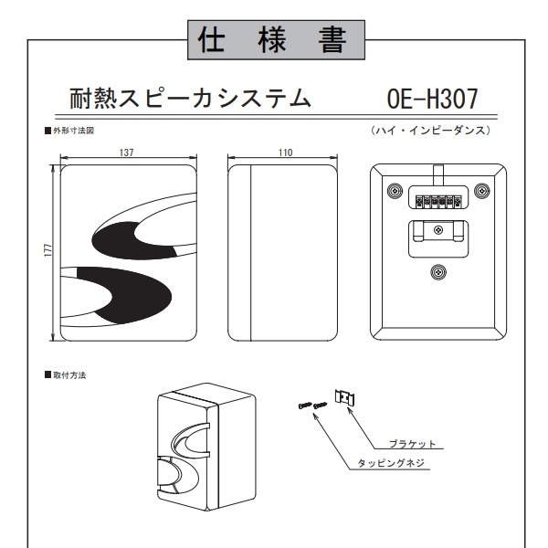 | 公称インピーダンス | OE-307:8Ω / OE-H307:3.3kΩ(3W)/5kΩ(2W)/10kΩ(1W) |