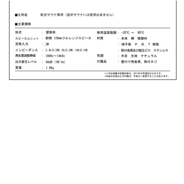 | スピーカ | 耐熱120mmフルレンジスピーカ |