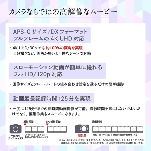 | 撮像素子 | 23.5×15.7mmサイズCMOSセンサー、APS-Cサイズ/DXフォーマット |