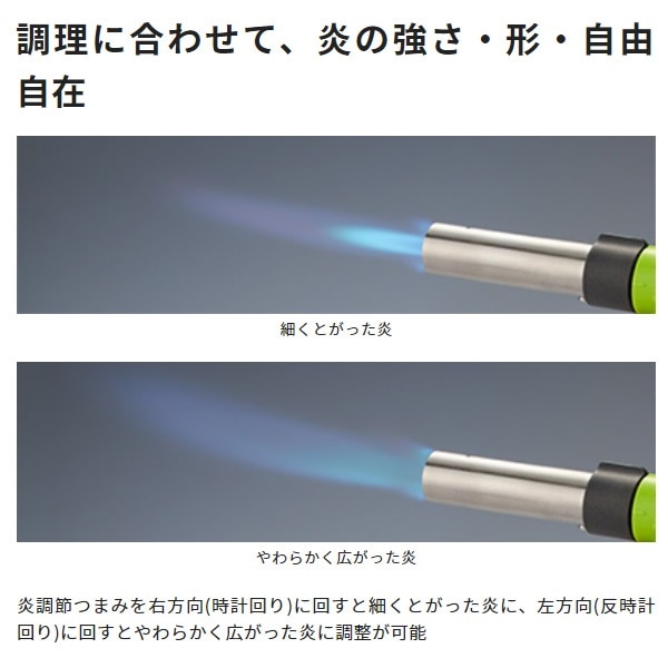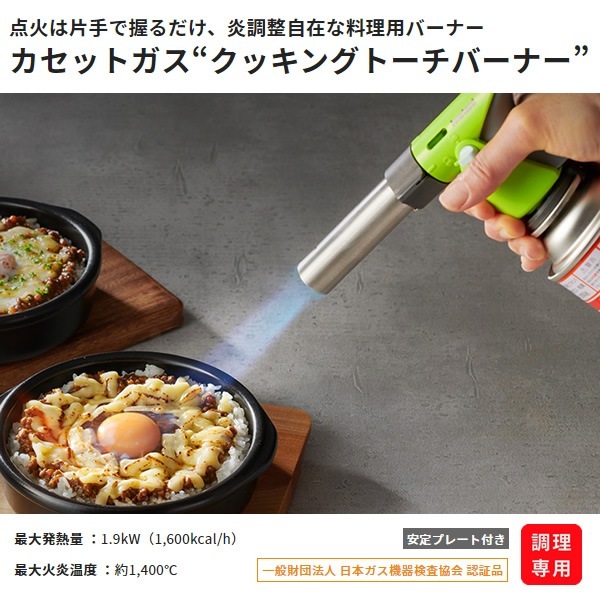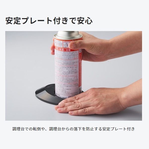 | 連続燃焼時間 | イワタニカセットガス 約110分 ※ イワタニカセットガスパワーゴールド 約90分 ※ ※ 気温20~25℃のとき、強火で断続使用したときの目安時間(5分以上の連続使用はしないでください) |