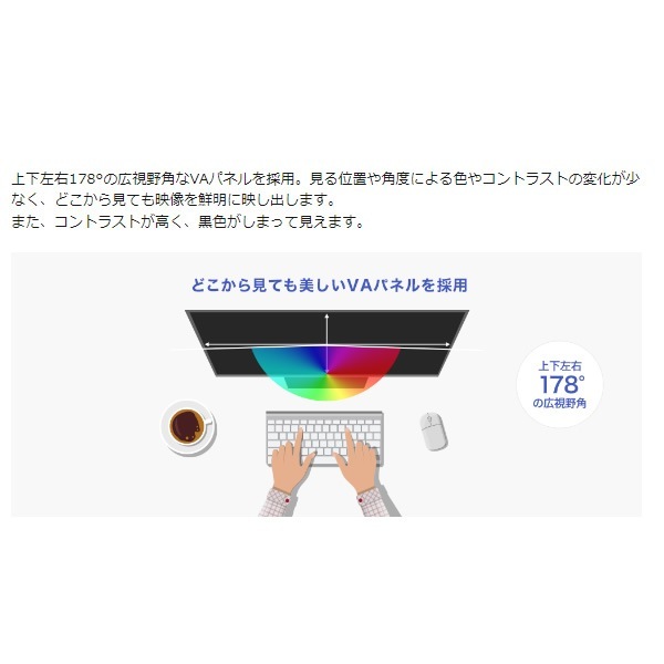 | 主な付属品 | DisplayPortケーブル、HDMIケーブル、電源コード(PSE適合品)、目隠しシール、取扱説明書 |