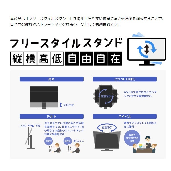 | 主な付属品 | DisplayPortケーブル(1.8m)、HDMIケーブル(2.0m)、電源コード(1.8m、PSE適合品)、台座、取扱説明書、シール(2枚) |