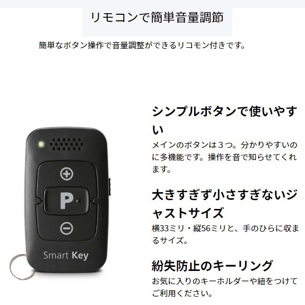 | 付属品 | 耳せん(大、中、小、フリー)、リモコン smart key1、ボタン電池1個、掃除ブラシ、化粧ケース |