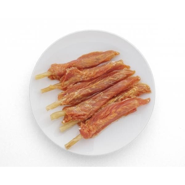 | 原材料 | 鶏ささみ、牛皮、でん粉、食塩、グリセリン、プロピレングリコール、保存料(ソルビン酸K)、酸化防止剤(ビタミンC)、発色剤(亜硝酸Na) |