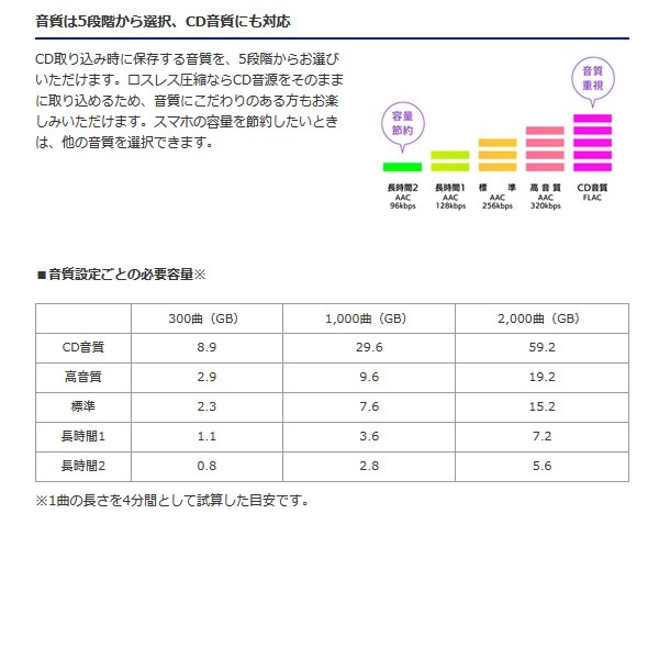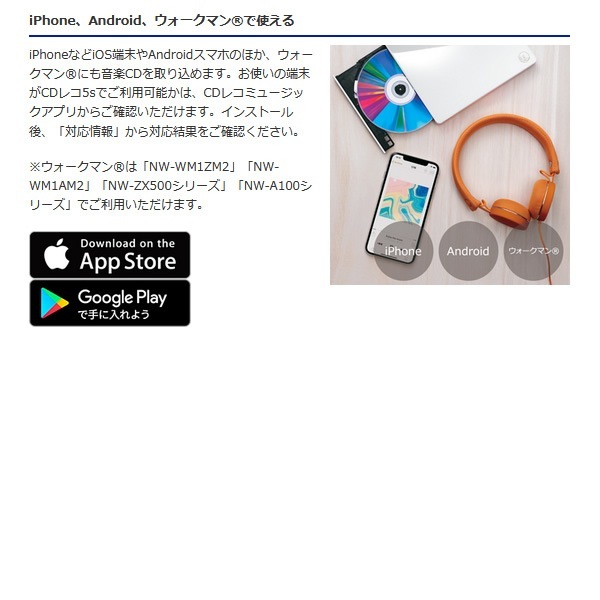 | 対応機種 | iOS、Android搭載のスマホ・タブレット端末、ウォークマン(R)(NW-WM1ZM2/NW-WM1AM2/NW-A100シリーズ/NW-ZX500シリーズ) |