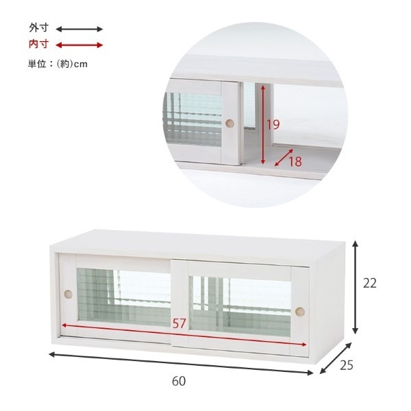| 内寸及び補足説明 | 扉内内寸:(約)幅57×奥行18×高さ19cm 扉内内寸(間口):(約)幅26cm |