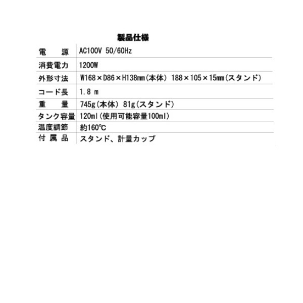 | タンク容量 | 120ml (使用可能容量100ml) |
