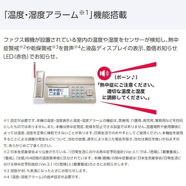 | 質量(約) | ・親機:2.5kg(お試し用インクフィルム5m装着時、受話子機含む) ・受話子機:145g(電池パック含む) ・子機:140g(電池パック含む) ・子機充電台:155g |