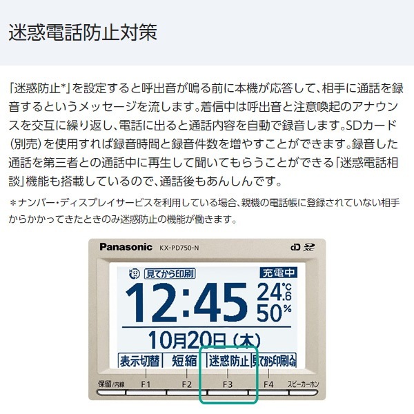 商品コード:KX-PD750DW-N