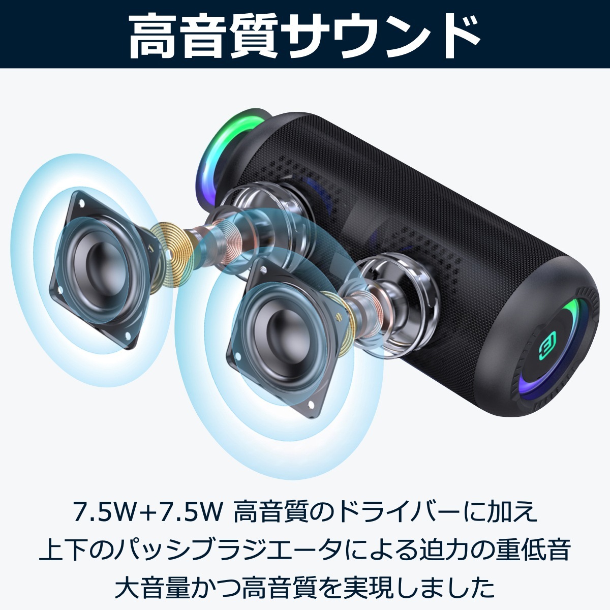 | 2 x 60mm コーン型ユニット 2 x 65mm パッシブラジエーター | |