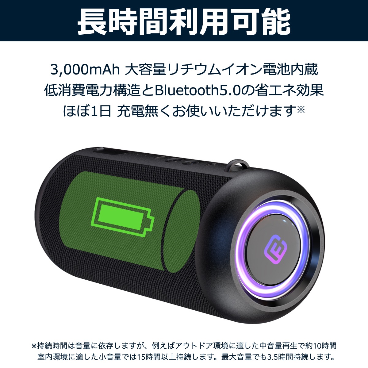 | 3,000mAh : リチウムイオン電池 | |