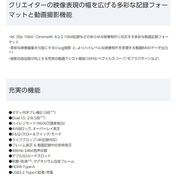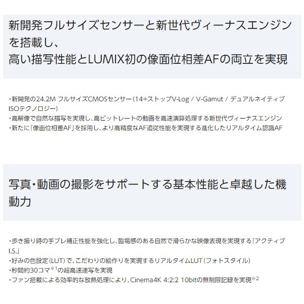 | 電源 | バッテリーパック(付属、7.2V)/ACアダプター(別売 DMW-AC10 100~240V対応)※別売DCカプラーDMW-DCC12が必要です。 |